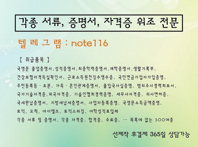 재직증명서위조제작▲텔레note116▲